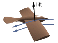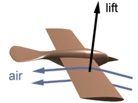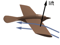 You may be surprised to learn that a bird or ornithopter flies in much the same way as an airplane. The wings produce lift in the same way as an airplane, simply by their forward motion through the air. To understand how this works, let's start with the simple case of gliding flight.