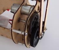 How much reduction is needed? That will depend on your motor selection and what flight characteristics you want the ornithopter to have. The "micro air vehicle" type ornithopters, in order to meet size requirements and handle wind better, have small, rapidly-beating wings, and a high wing loading. These ornithopters might have a gear ratio of 30:1 with a coreless motor. Larger RC ornithopters typically have a gear ratio of about 100:1 with a standard brushed motor, or about 35:1 with an outrunner. As described on the "motors" page, there is a need to fine-tune the gear ratio in order to optimize performance.